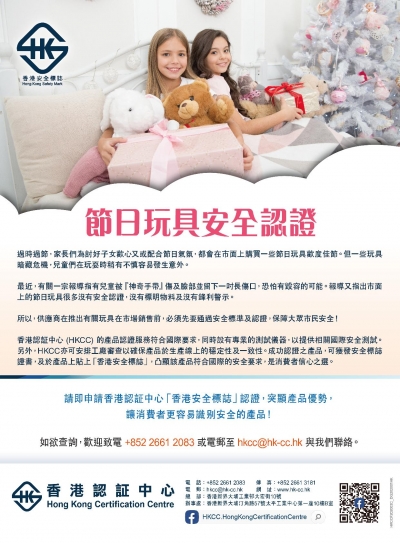 请即申请香港认证中心「香港安全标志」,突显产品优势,让消费者更容易识别安全的产品!