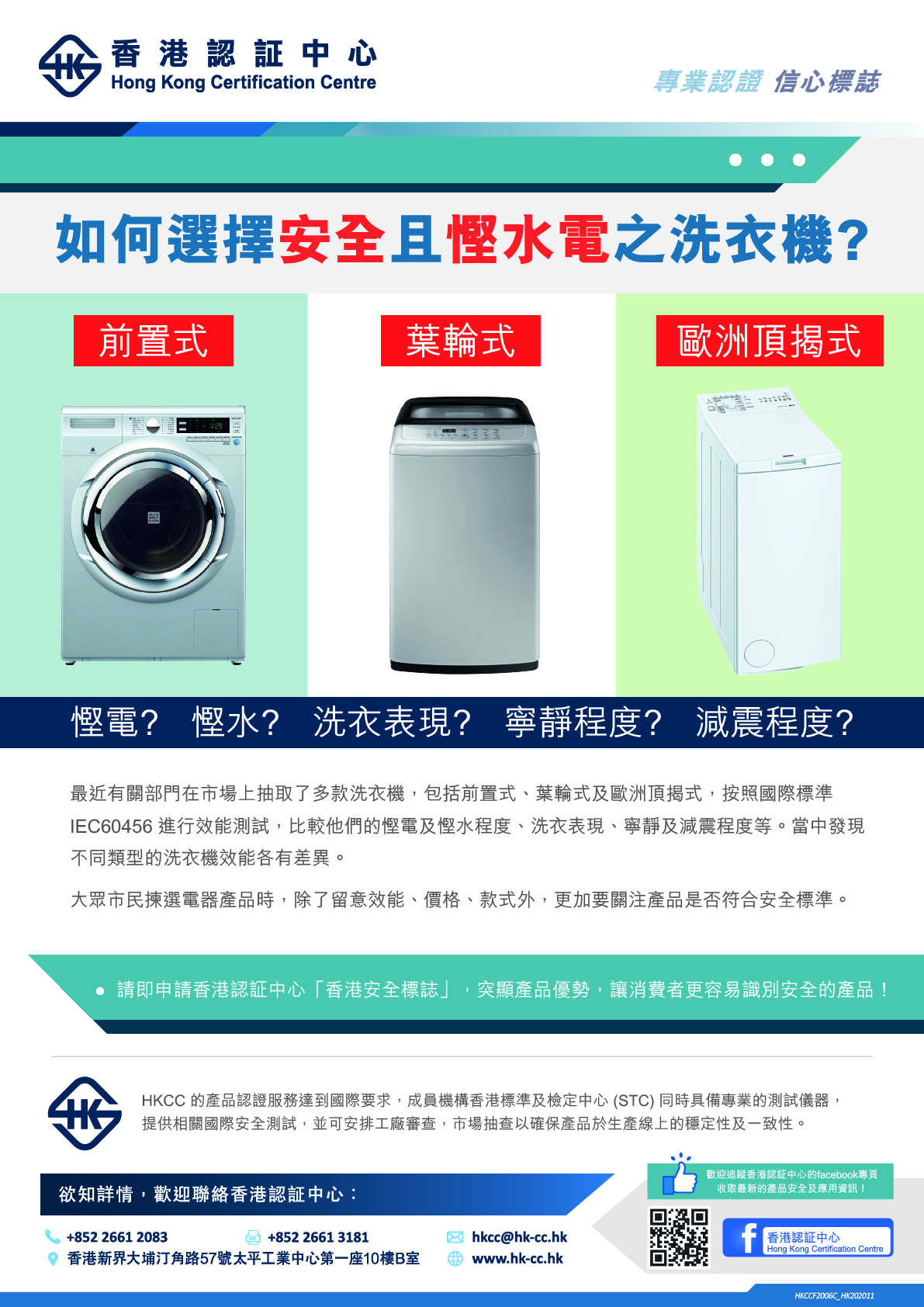 最近有關部門在市場上抽取了多款洗衣機,包括前置式、葉輪式及歐洲頂揭式,按照國際標準IEC60456進行效能測試,比較他們的慳電及慳水程度、洗衣表現、寧靜及減震程度等。當中發現不同類型的洗衣機效能各有差異。